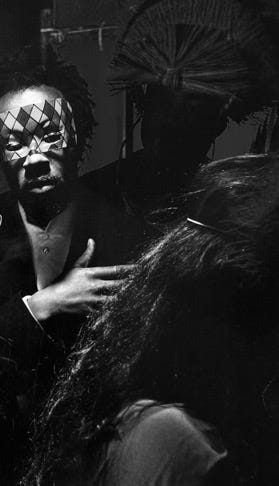 Having traded in his first mask for something less extravagant, The Preacher’s Son signals for everyone to clap their hands together and follow his call with a response.